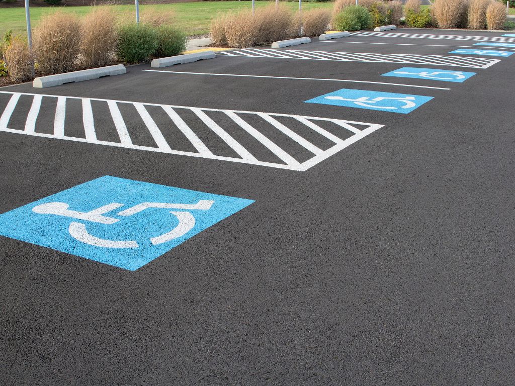 Crisp, ADA-compliant markings for parking stalls, fire lanes, and directional arrows.